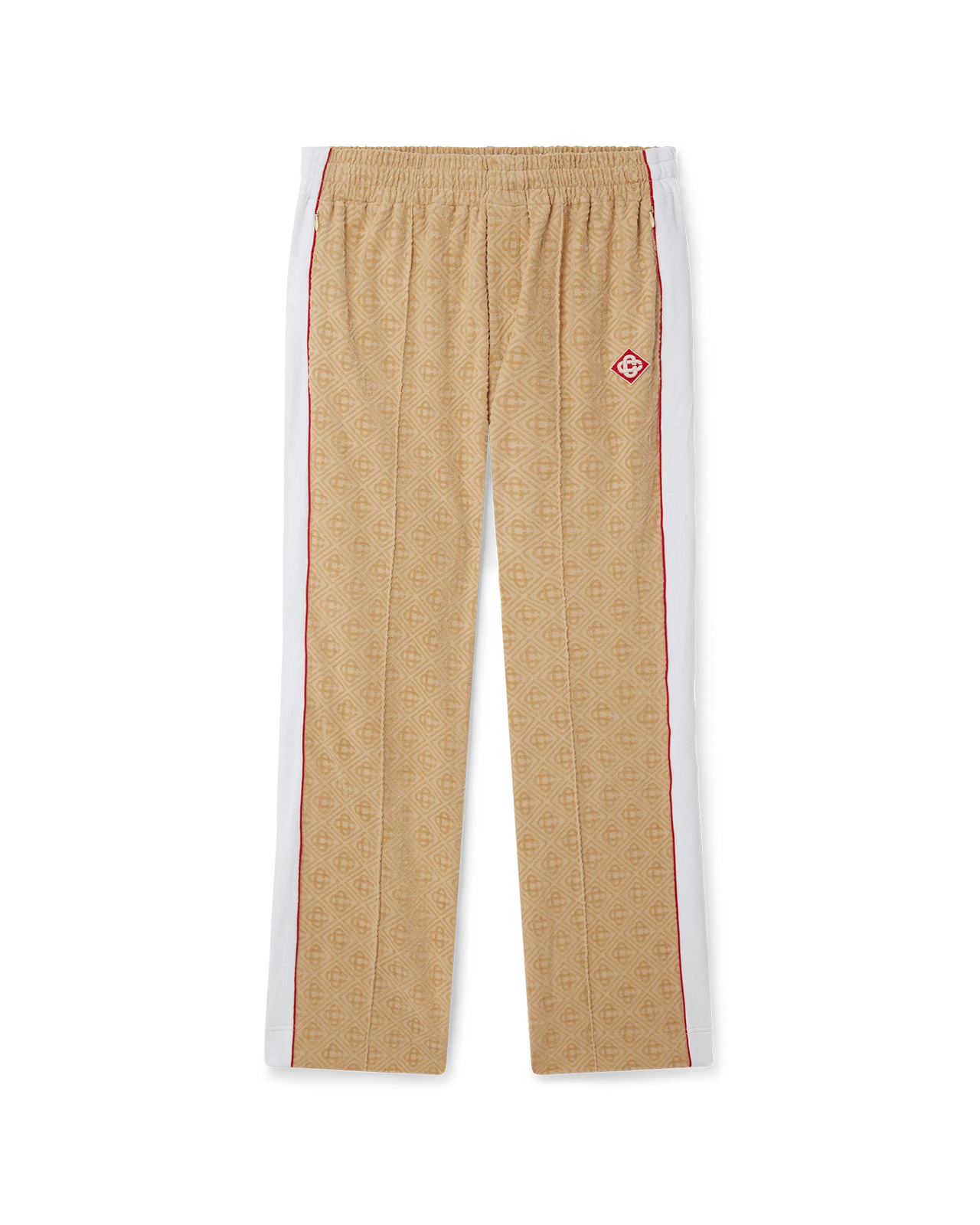 The monogram velour track pants are an elevated sportswear staple crafted from an all-over monogram cotton blend fabrication with the diamond monogram on the left leg. Finished with elasticated drawstring fastening and side pockets. Velour cotton blend fabric 70% cotton 28% polyamide 2% elastane Colour: taupe Specialised dry clean only Made in Portugal Fits true to size, take your regular size