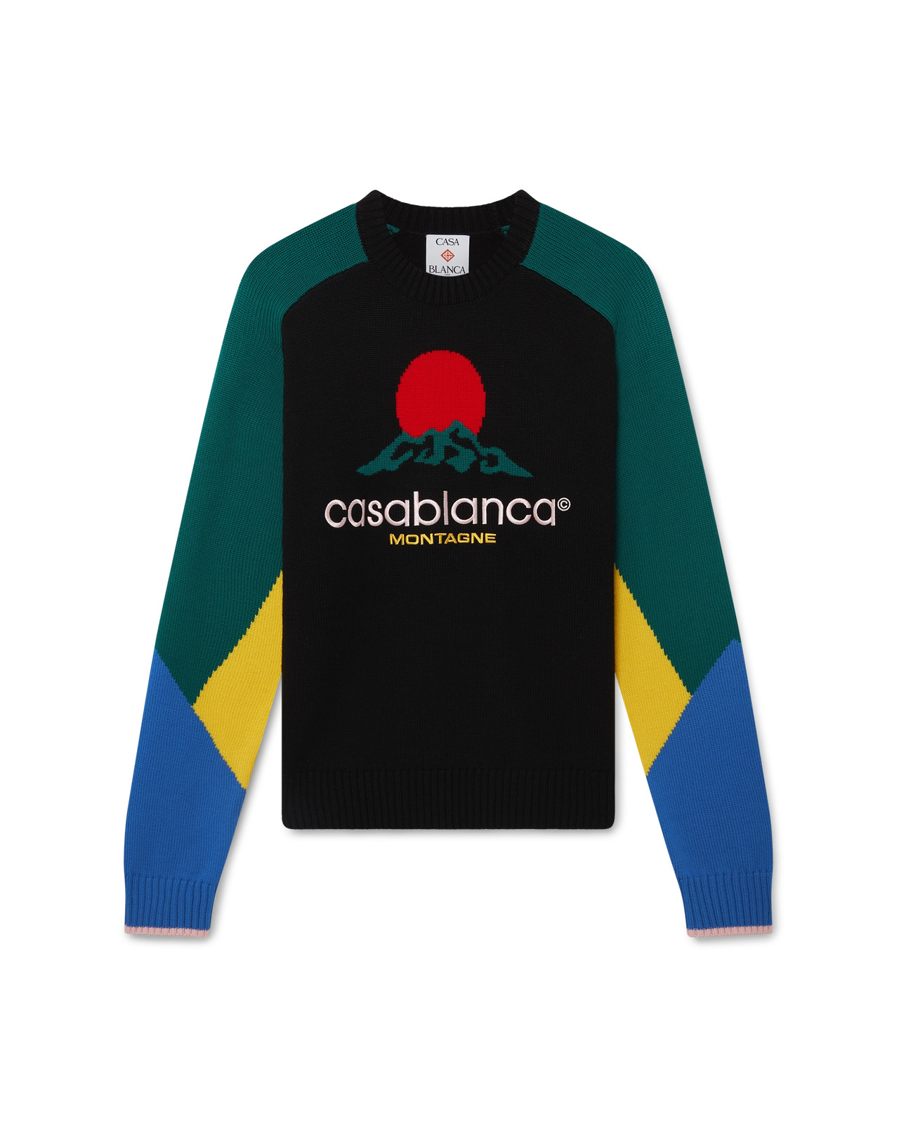The Montagne merino jumper is a long-sleeved knitted design crafted from cotton fabric. Completed with the Casa Montagne text logo - a logo that first looks like a mountain but as you look closer reads as Casa - across the chest, rib cuffs with edge detail, and a classic crew neck. - Cotton fabric - Main: 100% cotton - Embroidery: 100% polyester - Casablanca Montagne multicolour - Specialised dry clean only - Made in China - Relaxed fit - The model is 187cm/6'1 and is wearing a size M