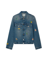 The motif denim jacket is a classic silhouette crafted from 100% cotton for a classic fit. Finished with embroidered artwork representing the house's symbology with nature and architecture, chest pockets and gold hardware closure. Intended to be worn with its coordinating straight-leg jeans. - Embroidered cotton fabric - 100% cotton - Embroidery: 100% polyester - Colour: blue stone wash - Specialised dry clean only - Made in Portugal