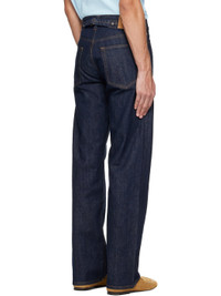 Non-stretch denim jeans. · Belt loops · Five-pocket styling · Zip fly · Logo patch and cinch strap at back waistband · Logo embroidered at back pocket · Contrast stitching in tan Supplier color: Indigo 100% cotton. Made in Portugal 261195M186000