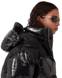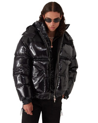 The nylon puffer jacket is a modern boxy outerwear design crafted from ripstop nylon fabric with down filling and contrasting monogram jacquard panel across the shoulders. Completed with a hood featuring CC logo toggles and drawstring fastenings, a stand-up collar providing extra warmth and protection against the elements, a zip closure with the house's signature diamond logo zipper tab, front pockets with zip closure, branded adjustable cuff straps, and elasticised hem and cuffs. - Ripstop fabric - Main: 100% polyamide - Lining: 100% polyamide - Colour: black - Specialised dry clean only - Made in Italy - Relaxed fit - The model is 187cm/6'1 and is wearing a size M - Exclusive to casablancaparis.com