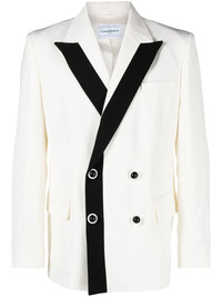 contrast-lapel double-breasted blazer Casablanca offers a twist on a classic double-breasted blazer here, detailing it with contrasting lapels for an eye-catching finish. Imported Composition Outer: Viscose 57%, Silk 43% Lining: Viscose 52%, Cotton 48% SIZE & FIT Model measurements Height 6 ft 2 in(1.87 m) Bust/Chest 37 in(94 cm) Hips 33.85 in(86 cm) Waist 27.95 in(71 cm) FittingInformation This piece fits true to size. We recommend you get your regular size Cut for a slim fit Made with a mid-weight non-stretch fabric