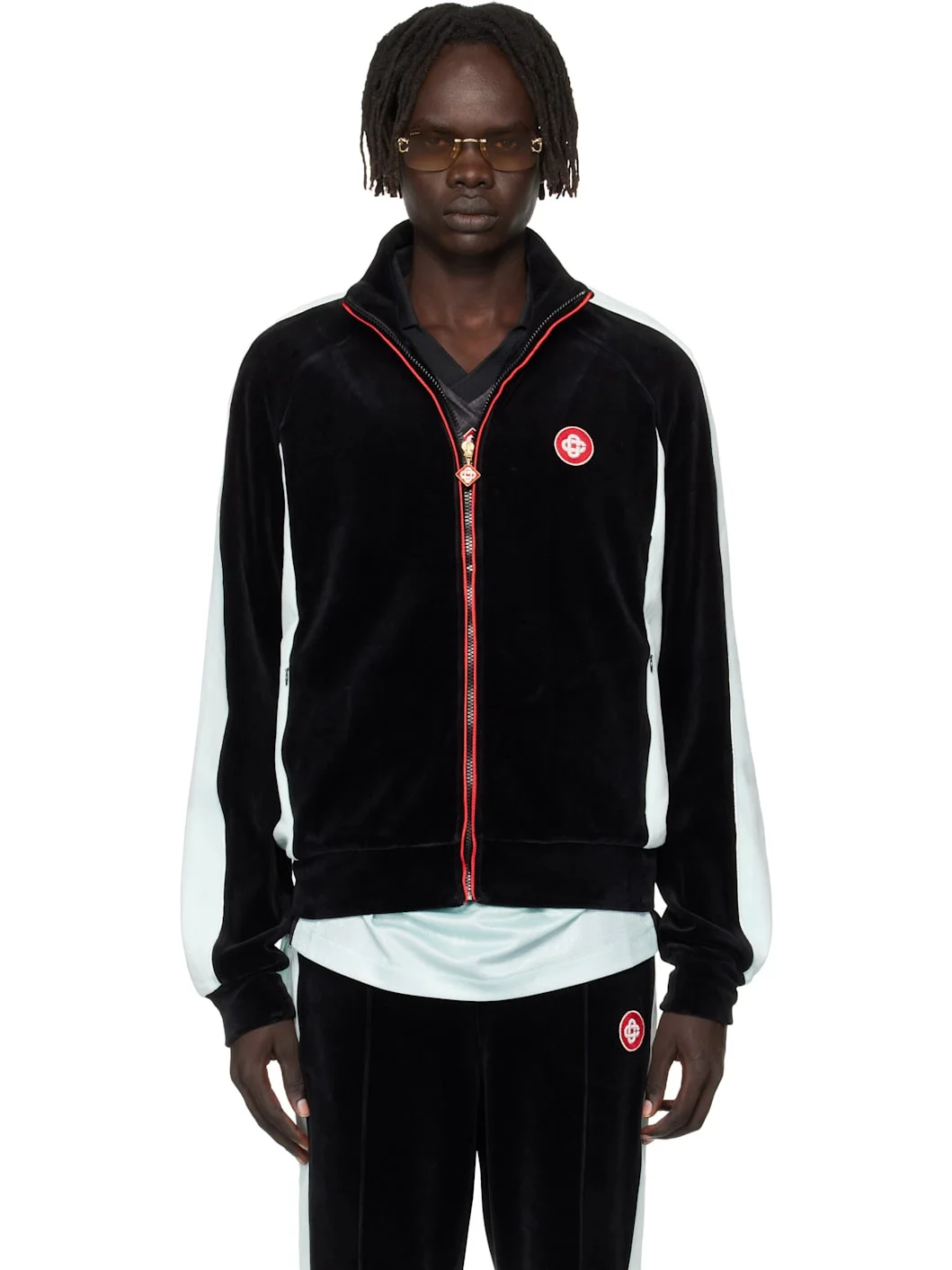 Cotton-blend velour track jacket. · Piping throughout · Stand collar · Zip closure · Embroidered logo patch at chest · Zip seam pockets · Full mesh lining Supplier color: Black Body: 89% cotton, 11% polyamide. Lining: 100% polyester. Made in Portugal 252195M202006