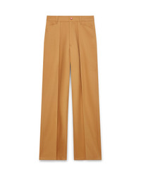 The pleated chinos are a tapered-leg design crafted from wool fabric, featuring a cotton-blend lining. Completed with belt loops, a zip closure, front pockets, a diagonal pleat, and welt back pockets with interlocking CC logo gold rim enamel button closure. - Wool fabric - Main: 100% wool - Lining: 52% viscose 48% cotton - Colour: beige - Specialised dry clean only - Made in Portugal - The model is 185cm/6'1 and is wearing a size M