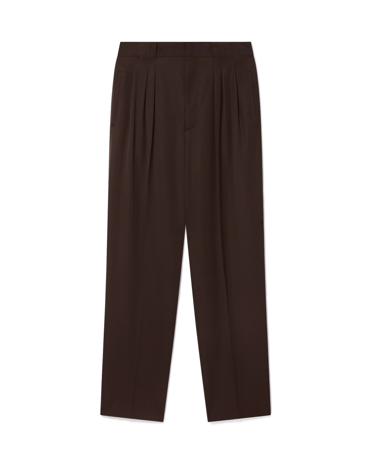 The pleated wool trousers are a tapered leg design crafted from virgin wool and feature a cotton blend lining. Completed with a zip closure, five pleats at the front, slanted front pockets, welt back pockets with a small box pleat, and wide belt loops. - Wool fabric - Main: 100% virgin wool - Lining: 52% viscose 48% cotton - Colour: brown - Specialised dry clean only - Made in Portugal - The model is 187cm/6'1 and is wearing a size M