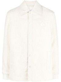 ribbed buttoned cardigan A cross between a jacket and a cardigan, this knitted piece speaks to Casablanca's creative flair and affinity for leisurewear. It's rendered in off-white virgin wool blend to a finely ribbed construction and fuzzy texture for a soft and cosy sensation. Highlights - Off-white - Virgin wool blend - Ribbed detailing - Textured finish - Classic collar - Front button fastening - Elasticated cuffs - Straight hem Imported Composition Outer: Virgin Wool 71%, Cotton 29% Lining: Viscose 52%, Cotton 48% SIZE & FIT Model measurements Height 6 ft 1 in(1.86 m) Bust/Chest 36.61 in(93 cm) Hips 37 in(94 cm) Waist 28.74 in(73 cm) FittingInformation Designed for a regular fit, allowing for a comfortably loose fit throughout the body Made from a midweight non-stretch fabric This piece fits true to size – take your usual size