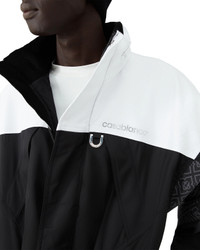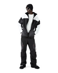 The ski jacket is a refined outerwear design crafted from ripstop fabric in black and white with monogram contrast, inspired by graphic beauty of Japan's winter countryside where traditional patterns echo through snow-covered landscapes. Drawing from rhythmic geometry of rural architecture and bold contrast of dark wooden structures against brilliant snowfields. Completed with zip closure, patch pockets with zip closure featuring elasticated zipper tabs, silver-plated hardware, and zip closure fastening at the ankles. - Monogram ripstop fabric - Main: 96% polyamide, 4% polyurethane - Lining: 96% polyester - Padding: 80% down 20% feather - Colour: black/white - Specialised dry clean only - Made in Portugal - Relaxed fit - The model is 187cm/6'1 and is wearing a size M - Exclusive to casablancaparis.com, Paris Flagship store and selected retailers