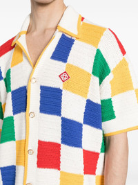 crochet-knit shirt This Casablanca shirt boasts a crochet construction that's embroidered on the chest with the ubiquitous logo. Highlights - White/multicolour - Cotton - Crochet knit - Embroidered logo at the chest - Notched collar - Front button fastening - Drop shoulder - Short sleeves Imported Composition Rayon 95%, Polyester 5% Outer: Cotton 100% SIZE & FIT Model measurements Height 6 ft 2 in(1.89 m) Bust/Chest 37.4 in(95 cm) Hips 36.61 in(93 cm) Waist 28.34 in(72 cm) Measurement CHEST 44.09 in(112 cm) SLEEVE LENGTH 7.48 in(19 cm) LENGTH 25.59 in(65 cm) WAIST 43.3 in(110 cm) Shoulder Width 22.83 in(58 cm) FittingInformation Designed for a relaxed fit, this piece allows for comfort and movement when worn Made with a midweight knit, this piece offers some stretch This piece fits true to size – take your usual size Washing instructions Hand Wash