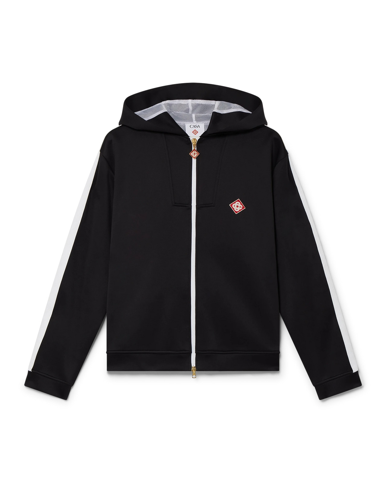 The scuba hooded sweatshirt is a long-sleeve sportswear design crafted from scuba jersey fabric and features stripe details from the shoulders down the sleeves. Completed with a hood, a front zip closure, elasticated cuffs and hem, and signature diamond monogram. - Scuba jersey fabric - Main: 60% polyamid 40% cotton - Lining: 100% polyester - Diamond logo patch - Colour: black - Specialised dry clean only - Made in Portugal - Fits true to size, take your regular size - The model is 187cm/6'1 and is wearing a size M