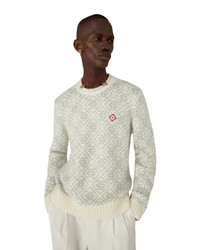 The ski jumper is a refined apres-sport design from mohair fabric featuring the house's white and grey monogram motif, inspired by frost patterns on traditional Japanese farmhouse windows. Drawing from snow crystals on bamboo groves, the design blends sport-leisure elegance with alpine functionality. Completed with a rib knit crew neck and hem. - Mohair mix fabric - Composition: 25% polyamide, 21% viscose, 18% cotton, 14% wool, 13% mohair, 9% polyester - Colour: white/grey monogram - Specialised dry clean only - Made in China - Slim fit - The model is 187cm/6'1 and is wearing a size M - Exclusive to casablancaparis.com, Paris Flagship store and selected retailers