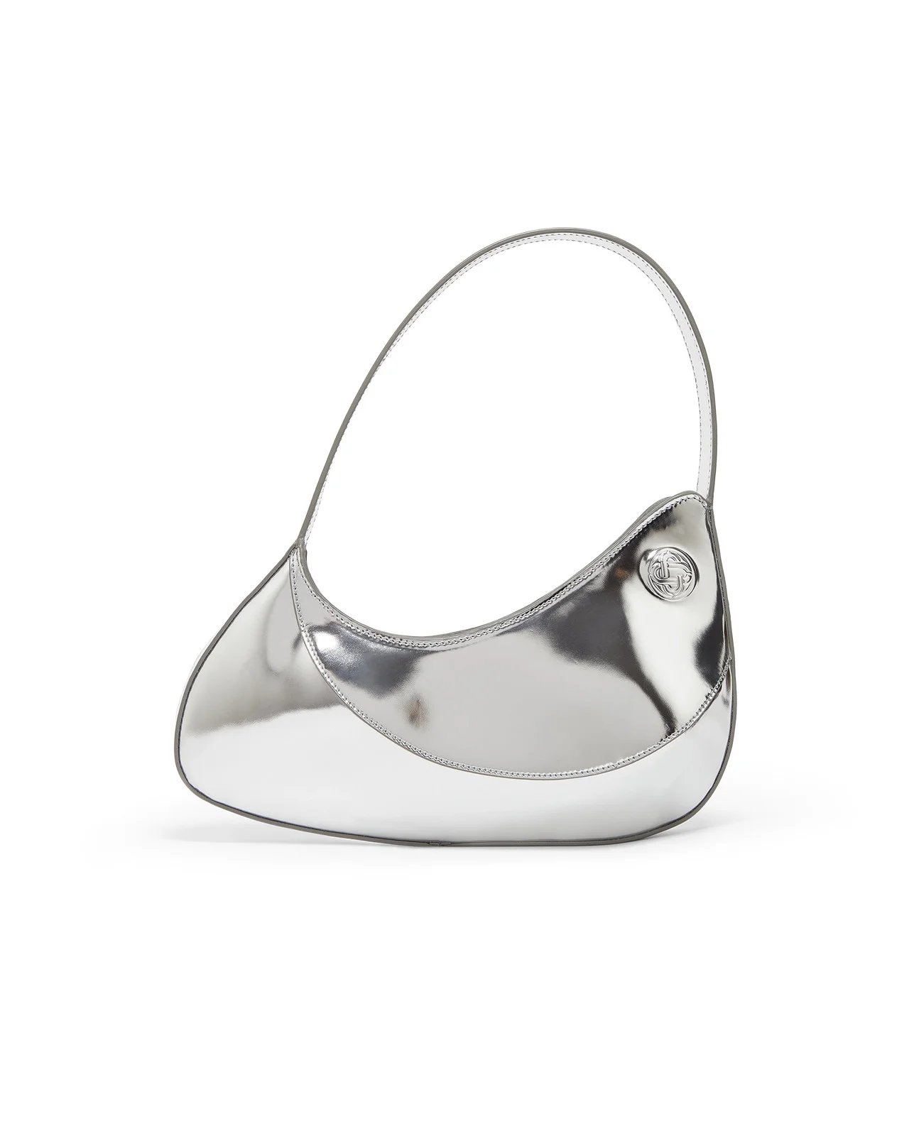 The silver raver bag is a to-the-body evening bag crafted from goat and calf leather, featuring the house's round Casablanca logo patch. Completed with a shoulder strap, zip closure, and an internal slip pocket. - Goat leather - 100% goat leather - Contrast: 100% calf leather - Cotton mix lining - Zamac hardware - Colour: silver - Clean with a soft, dry cloth - Made in Italy