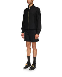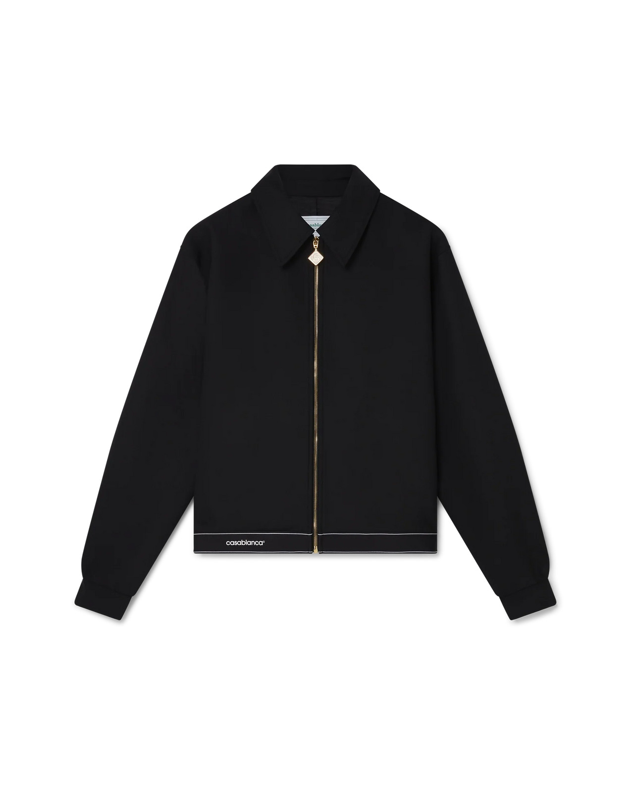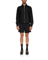 The sports tailoring jacket is crafted from a wool blend fabric. Completed with a point collar, front zip closure with the house's signature diamond logo, welt pockets and cuffs with gold-plated stud button closure - designed to be worn with its matching shorts. Wool blend fabric 53% polyester 43% virgin wool 4% elastane Colour: black Specialised dry clean only Fits true to size, take your regular size The model is 187cm/6’1 and is wearing a size M