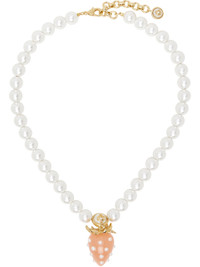Beaded faux-pearl necklace in white. · Graphic pendant · Logo charm at adjustable lobster-clasp fastening · Gold-tone brass hardware · L19" Supplier color: Brass/Resin/Pearl Brass, resin. Made in Thailand 261195M145000