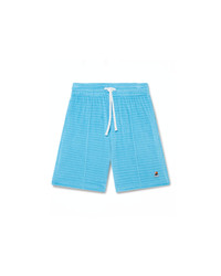 The stripe velour shorts are a classic design crafted from stripe velour fabric. Completed with an elasticised waistband, drawstring fastening, pin-tuck seams down the front, a back pocket with zip closure, and in-seam side pockets. - Drop needle velour fabric - Main: 73% cotton 16% polyester 10% recycled polyester 1% elastane - Lining: 100% cotton - Colour: blue - Delicate machine wash - Made in Portugal - Relaxed fit - The model is 187cm/6'1 and is wearing a size M