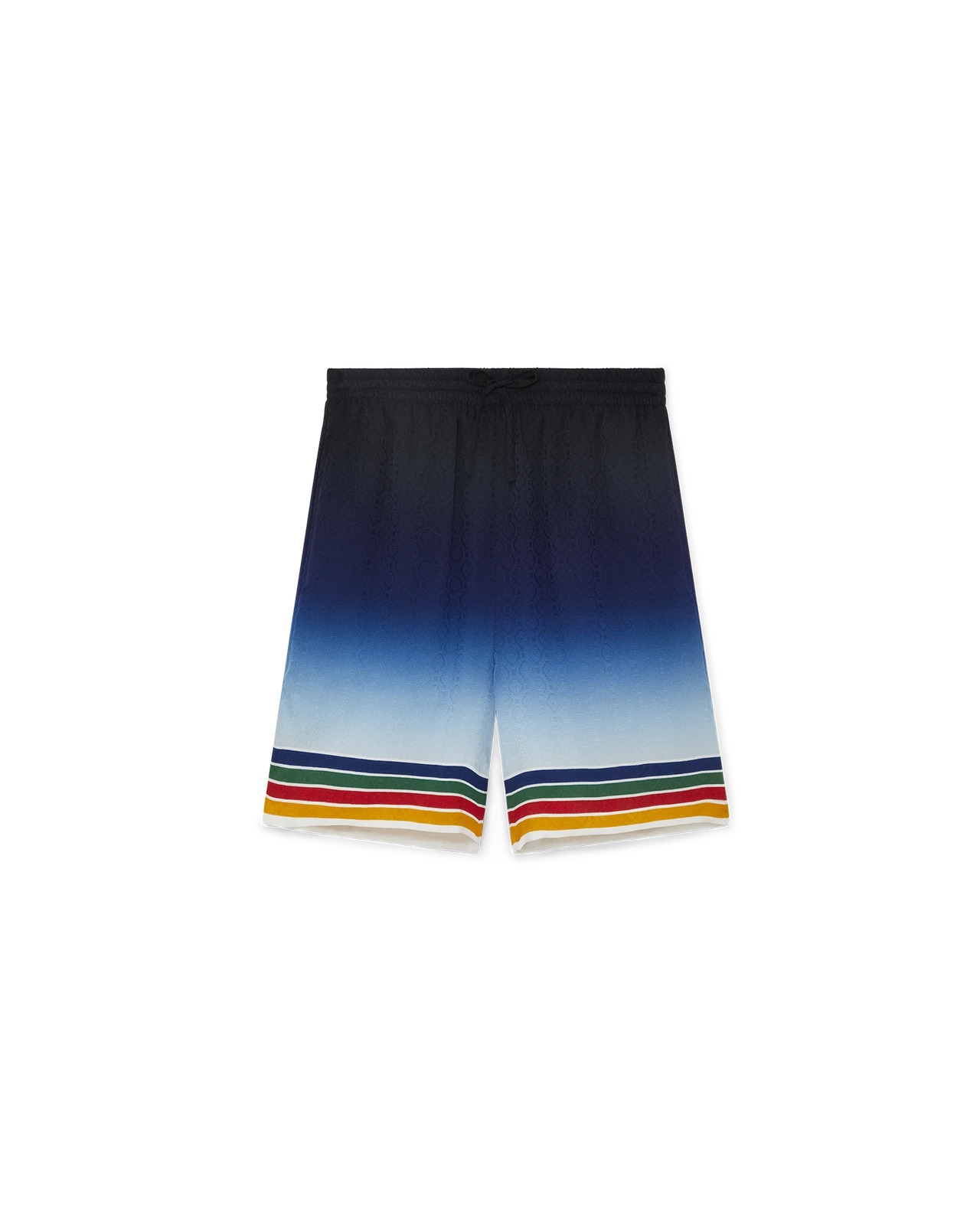 The Studio de Musique silk shorts is a printed short style featuring seasonal artwork on the back pocket rendered in a selection of cool dark blue shades with a contrast collar and hem. Finished with an elastic waistband, drawstring fastening, and side and back pockets to fall loose to above the knee. Monogram jacquard printed silk fabric 100% silk Studio De Musique print multicolour Specialised dry clean only Made in Italy Fits true to size, take your regular size The model is 187cm/6’1 and is wearing a size M
