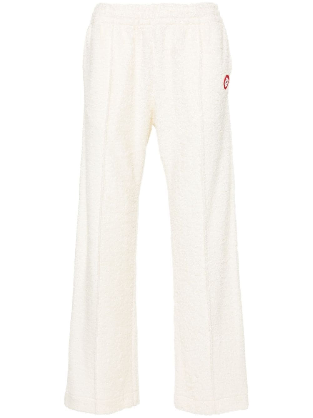Summer Towelling track pants Highlights - Ivory white/grass green - Organic cotton blend - Terry-cloth effect - Towelling finish - Raised seam detail - Side stripe detailing - Logo patch to the front - Straight leg - Jersey lining - Internal drawstring fastening waist Imported Composition Outer: Organic Cotton 57%, Polyamide 43% Lining: Lyocell 67%, Cotton 33% SIZE & FIT Model measurements Height 6 ft 1 in(1.85 m) Bust/Chest 36.22 in(92 cm) Hips 36.22 in(92 cm) Waist 27.55 in(70 cm) FittingInformation Designed for a straight-leg, allowing for an unrestricted and comfortable fit over the leg The elasticated waist allows for a comfortable fit Made from a midweight non-stretch fabric, this piece offers minimal elasticity when worn This piece fits true to size – take your usual size Washing instructions Dry Clean Only