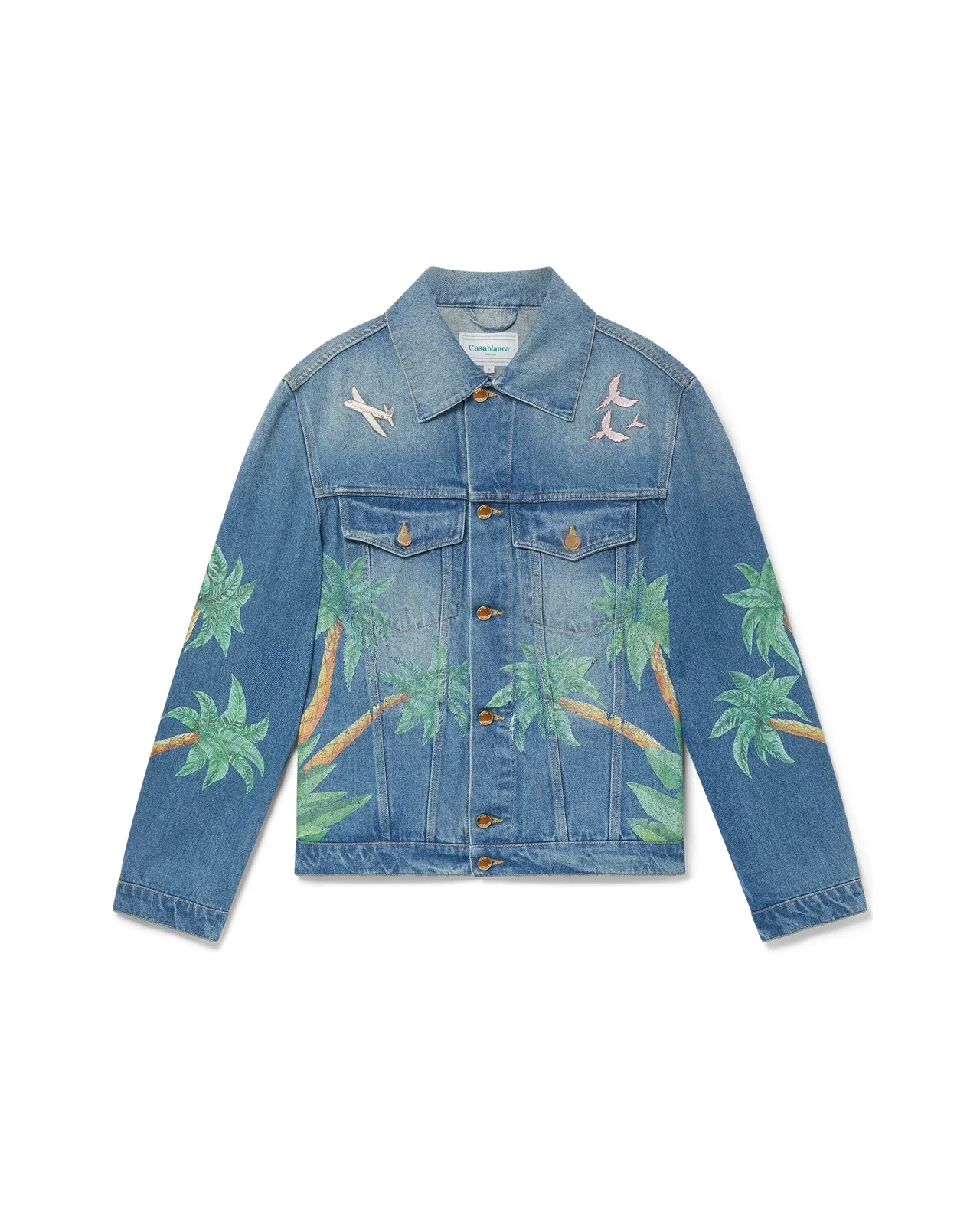 The motif denim jacket is a classic silhouette crafted from cotton fabric with a classic fit. Finished with the season's embroidered artwork representing the house's symbology with nature and tennis, chest pockets and gold-plated hardware closure. Intended to be worn with its coordinating straight-leg motif jeans. Embroidered printed denim 100% cotton Embroidery: 100% polyester Specialised dry clean only Fits true to size, take your regular size