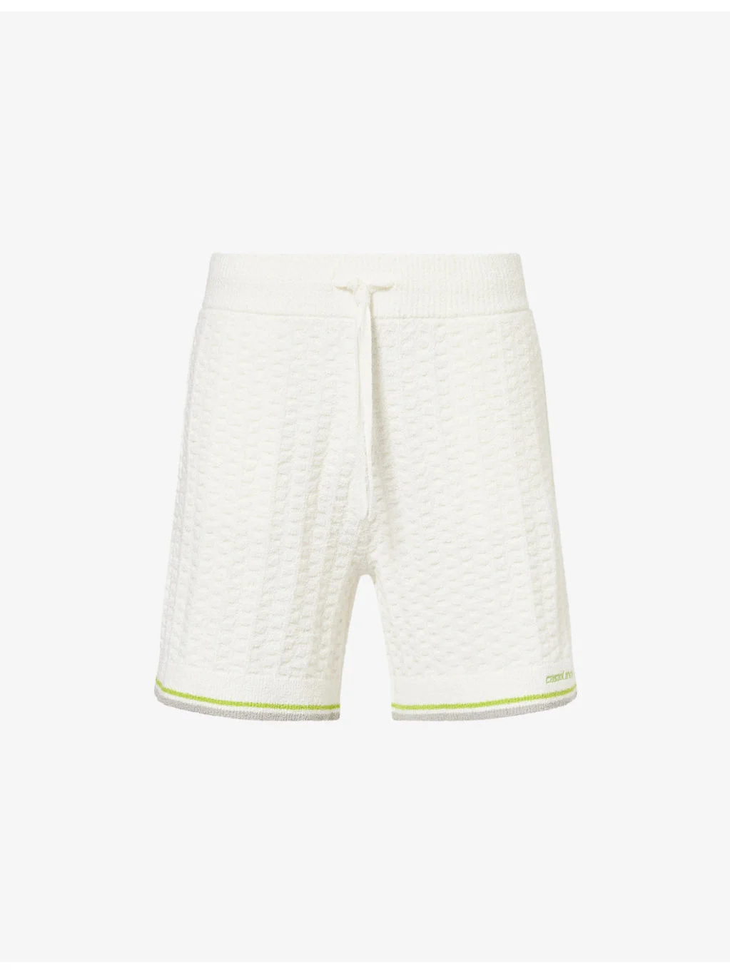 PRODUCT DETAILS - Casablanca stretch-cotton blend shorts - 72% cotton, 27% nylon, 1% elastane; embroidery 100% polyester - Regular fit, mid-rise, drawstring elasticated waistband, brand embroidery at front, all-over embossed pattern, all-over boucle texture, ribbed striped cuffs - Hand wash cold - Model is 6ft 2in/1.88m and wears a size medium - Midweight, stretchy Ref: R04548504