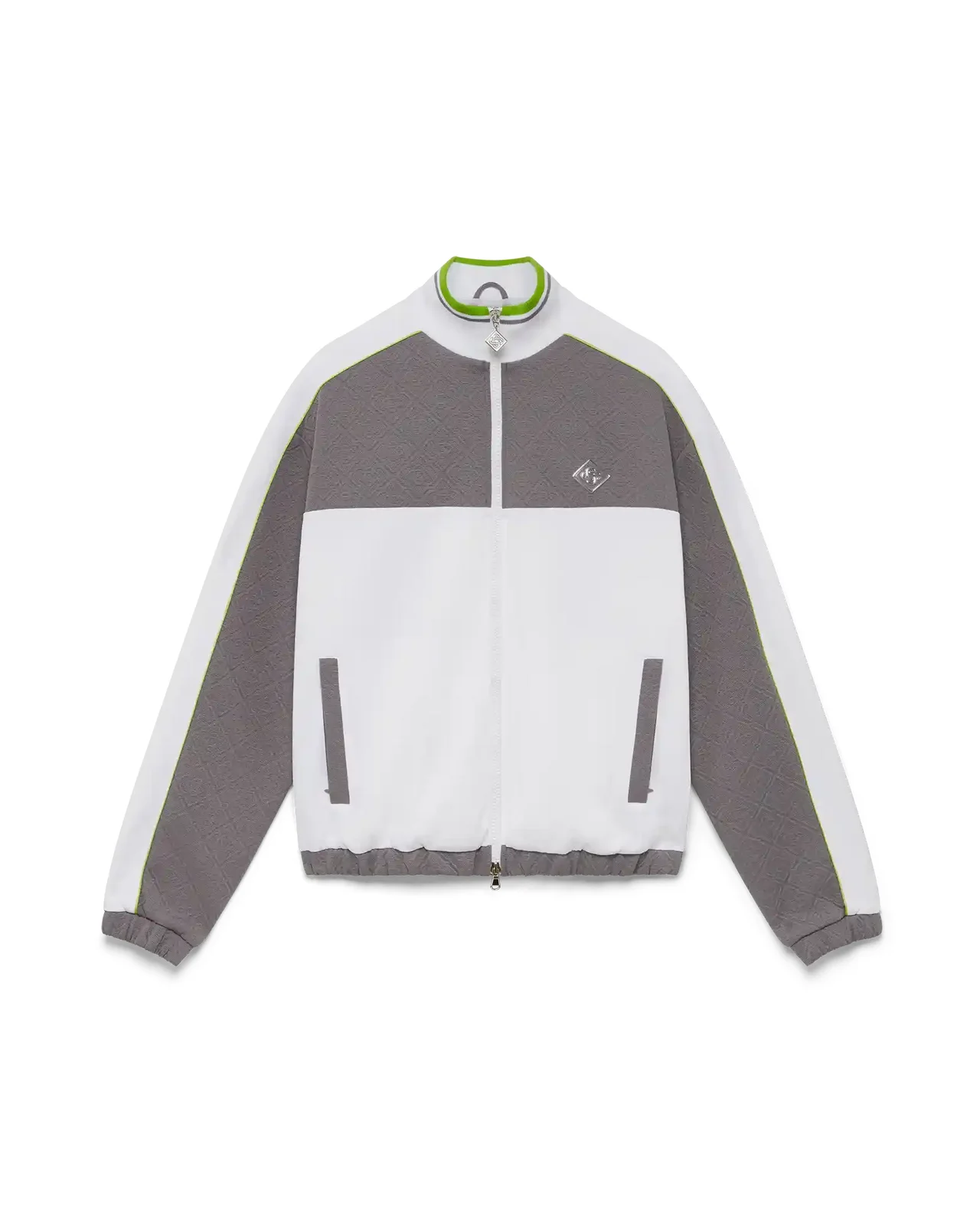 The Tennis jacquard track jacket is a refined design featuring the house's signature diamond logo and monogram fabric crafted with a track jacket silhouette. Completed with a knitted high-collar featuring striped edge detail, a zip closure, vertical welted pockets, stripe and piping details across the shoulders and down the sleeves, and elasticised cuffs and hem. - Monogram jacquard fabric - 65% polyester 18% polyamide 17% cotton - Contrast piping - Polyester lining - Diamond logo patch - Colour: grey/white - Specialised dry clean only - Made in Portugal - - - - Relaxed fit