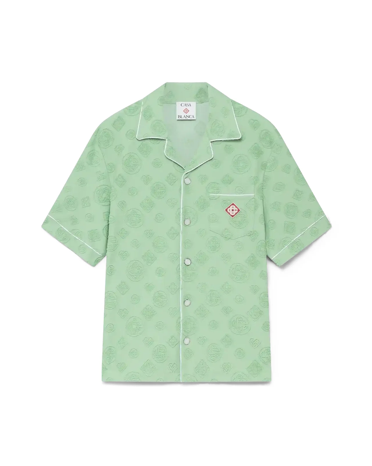The towelling monogram short sleeve shirt is a design featuring the house's signature diamond monogram print. Completed with a breast pocket, contrast piping detail, signature gold rim pearl buttons, and a Cuban collar. - Monogram towelling fabric - 81% cotton 17% polyamide 2% elastane - Contrast: 100% polyester - Diamond logo patch - Colour: black - Specialised dry clean only - Made in Portugal - Relaxed fit - The model is 187cm/6'1 and is wearing a size M