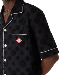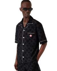 The towelling monogram short sleeve shirt is a design featuring the house's signature diamond monogram print. Completed with a breast pocket, contrast piping detail, signature gold rim pearl buttons, and a Cuban collar. - Monogram towelling fabric - 81% cotton 17% polyamide 2% elastane - Contrast: 100% polyester - Diamond logo patch - Colour: black - Specialised dry clean only - Made in Portugal - Relaxed fit - The model is 187cm/6'1 and is wearing a size M