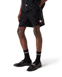 The towelling monogram shorts are a refined design featuring the house's signature diamond monogram print. Completed with an elasticised waistband, gold-tipped drawstring fastening, pin tuck seams down the front, a back pocket, slanted side pockets, and piping details on the back and front pockets and down the sides. - Monogram towelling fabric - 81% cotton 17% polyamide 2% elastane - Contrast: 100% polyester - Diamond logo patch - Colour: black - Specialised dry clean only - Made in Portugal - Relaxed fit - The model is 187cm/6'1 and is wearing a size M