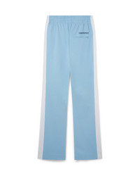 The track pants are a straight-leg sportswear design crafted from a round pique fabric. Completed with black tape and a white panel down the sides, side pockets with zip closure, a welt back pocket with zip closure, and an embroidered Casablanca logo. Round pique fabric 51% nylon 46% rayon 3% elastane Lining: 100% polyester Colour: blue Specialised dry clean only Made in Portugal Fits true to size, take your regular size The model is 187cm/6’1 and is wearing a size M