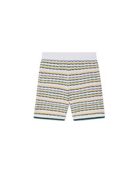 The tuck stitch shorts are a knitted design featuring the house's signature diamond logo. Completed with a ribbed elasticised waistband, drawstring fastening, ribbed hem detail, and a relaxed silhouette. Designed to be worn with its matching tuck stitch shirt. - Tuck stitch cotton fabric - 100% cotton - Diamond logo patch - Colour: striped multicolour - Specialised dry clean only - Made in China - Relaxed fit