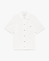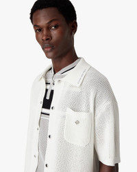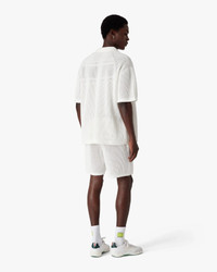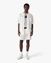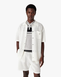 The white short-sleeve mesh shirt is a refined design, embodying the house's elevated approach to leisurewear. Completed with a collar, button closure, signature gold rim pearl buttons, and a breast pocket featuring the house's warped logo. - Cotton blend mesh fabric - 52% cotton 48% polyester - Colour: white - Specialised dry clean only - Made in China - - The model is 185cm / 6'1 and is wearing size M - Relaxed fit