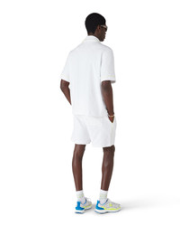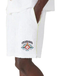 The towelling monogram shorts feature the season's artwork of a symmetrical wave formation breaking over the house's signature diamond logo edged by flames. Completed with an elasticised waistband, drawstring fastening, slanted side pockets, a back patch pocket, pin-tuck seams and piping details along the pockets and down the sides. - Towelling monogram fabric - 86% cotton 13% polyamide 1% elastane - Lining: 100% cotton - Embroidery: 100% polyester - Colour: white - Delicate machine wash - Made in Portugal - Relaxed fit - - The model is 189cm / 6'2 and is wearing size M - Exclusive to casablancaparis.com, and our Paris and LA flagship stores