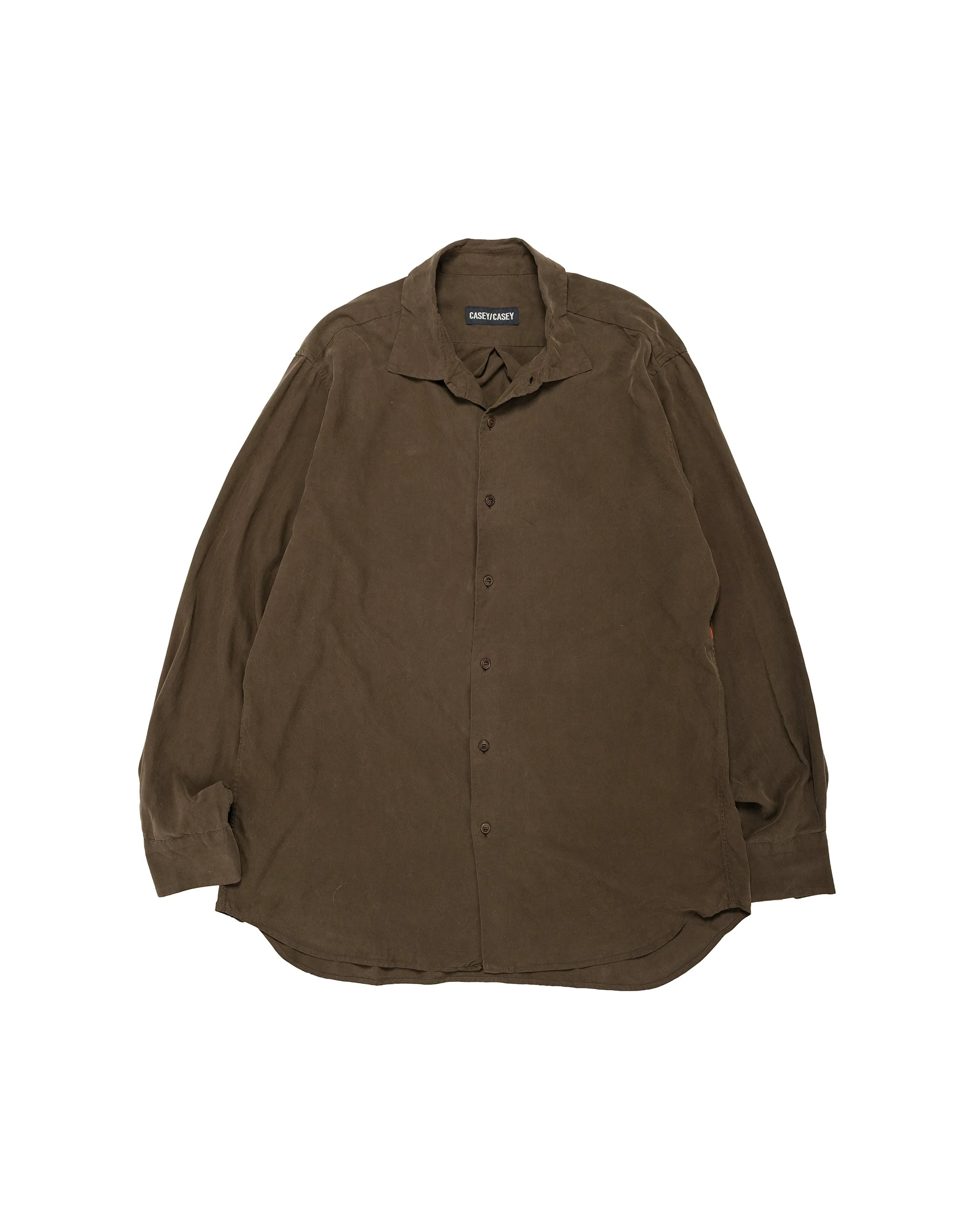 A classic Casey Casey straight, relaxed-fit shirt in spun silk. Unlike raw silk, spun silk is more comfortable and durable —— qualities that perfectly align with the brand’s philosophy. It’s nice to see a brand that truly walks the talk. DETAILS - Lightweight silk with textured matte surface - Pointed collar - Curved hem with longer rear - Rear shoulder pleats - Corozo buttons - 100% silk - Made in France - Model is 6’2” (189cm), 160lbs (73kg) and wearing M