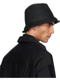 Braided paper hat in black. · Twill trim at brim · Red stitch at back face · Silk-twill browband Supplier color: Black Body: 100% paper. Trim: 55% polyester, 45% silk. Made in France 251007M140001