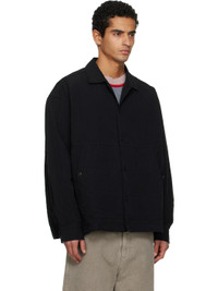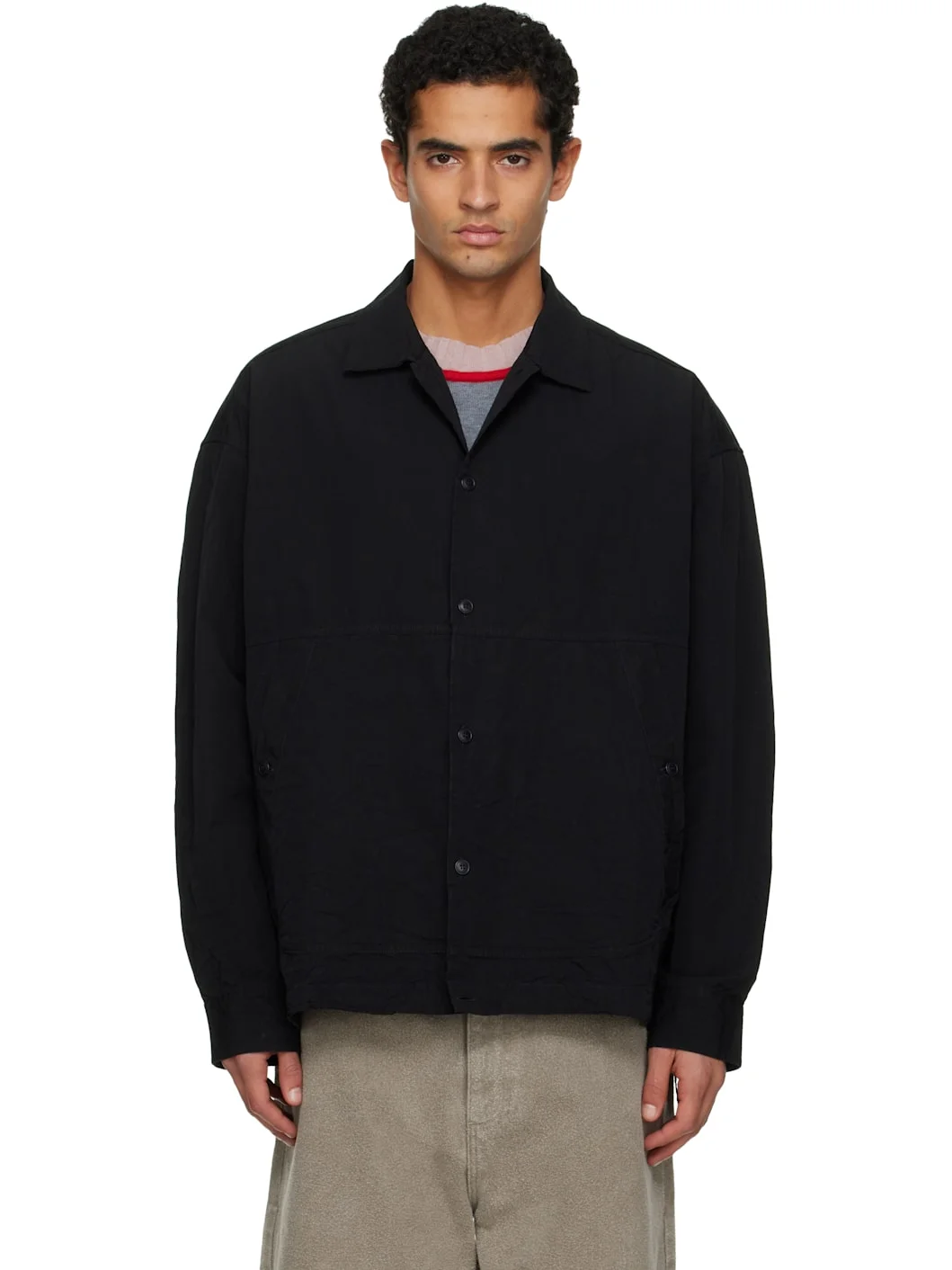 Lightweight crinkled cotton poplin overshirt. · Spread collar · Button closure · Welt pockets at front · Drawstring at hem · Red stitching at side seam · Dropped shoulders · Buttoned barrel cuffs · Twin pleats at back yoke Supplier color: Pitch black 100% cotton. Made in Portugal 252007M180000