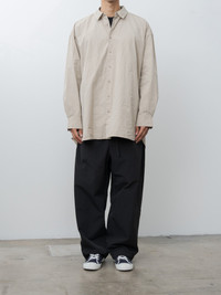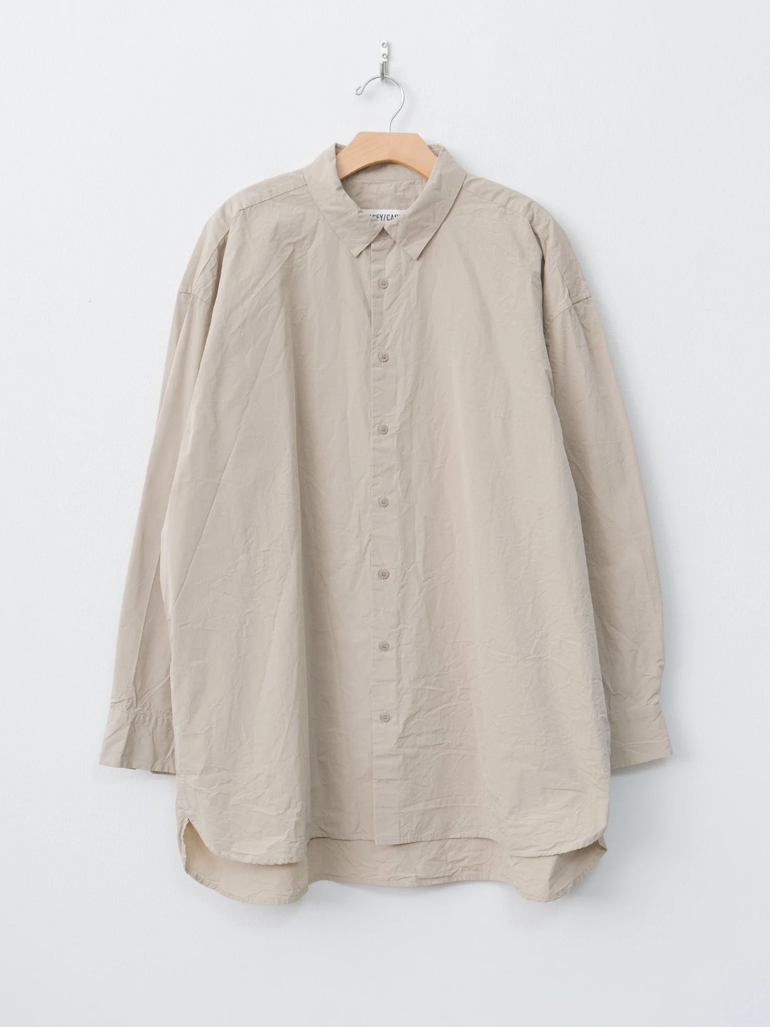 The Hamnet is an oversized shirt from Casey Casey made with a smooth, lightweight paper cotton with a washed finish. It features an effortless drape with a sweeping curved hem with an extended back, dropped shoulders, buttoned cuffs, a regular collar and tonal corozo buttons. - Made in France - 100% Cotton - Available in Beige, Blu Skull (gray) - The model is 6'1"/185cm and wears size M - We recommend sizing down for a more regular fit