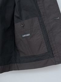 Casey Casey’s signature long-length work jacket, crafted from washed pigment wax cotton. Midweight with a structured, crisp hand and a lightly waxed outer, the fabric develops subtle tonal variations and irregularities that make each piece unique. Features a corozo button front closure, dropped shoulders, front patch pockets with button closures, a chest pocket, and an unlined construction with internal patch pockets. - Made in the EU - 100% Cotton - Available in Brown and Navy - Men's model is 6'1"/185cm and wears size M - Women's model is 5'8"/173cm and wears size S - for women's, we recommend sizing down