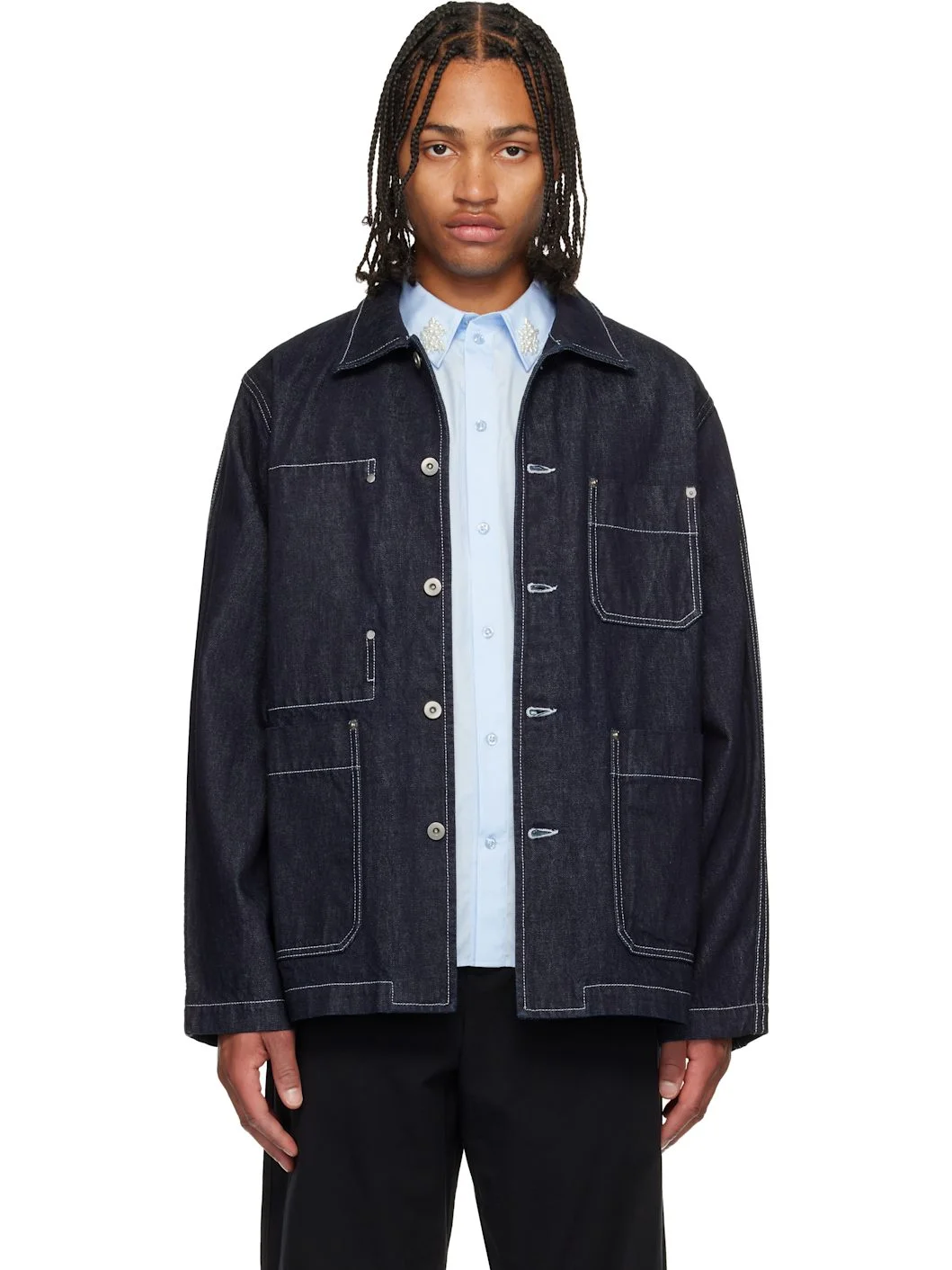 Non-stretch denim jacket. · Spread collar · Button closure · Patch pockets with rivets at front · Patch pocket at interior · Unlined · Contrast stitching in white Supplier color: Indigo 100% cotton. Made in Italy 252007M177000