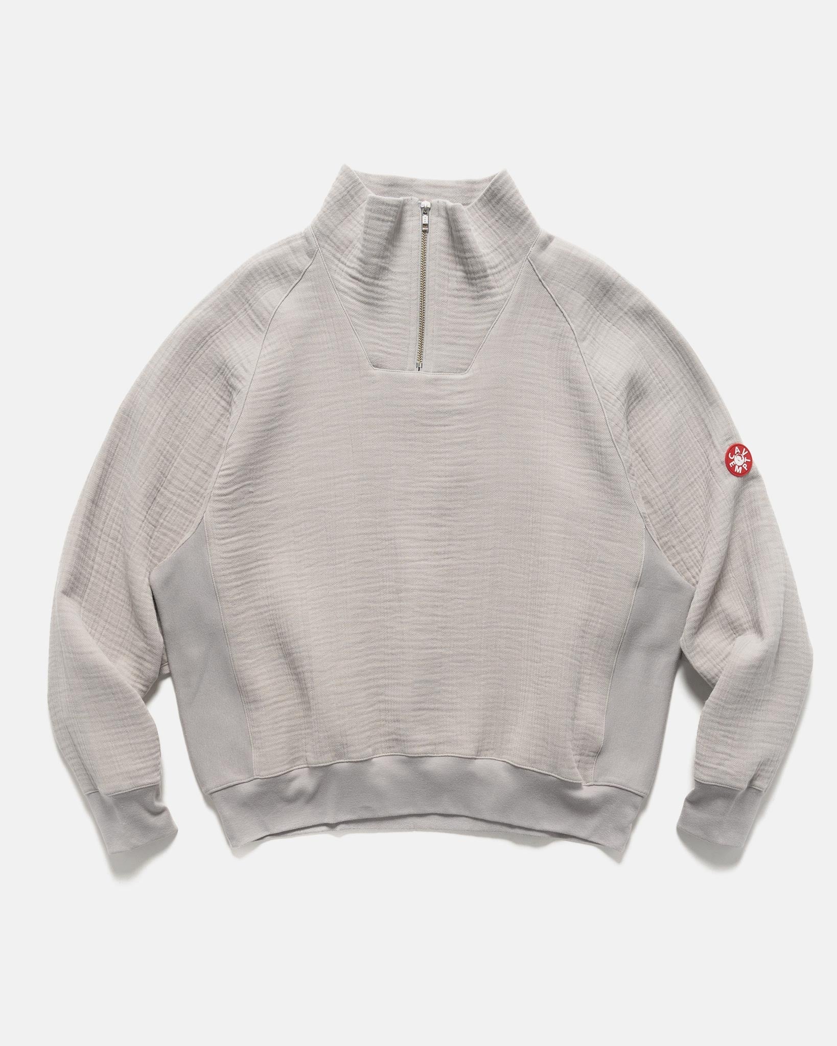 The CAV EMPT Layered Gauze Half Zip Grey offers lightweight warmth and breathability with a soft, textured cotton gauze construction. A half-zip funnel neck allows for adjustable coverage, while ribbed side panels and hems add structure to the relaxed fit. Finished with CAV EMPT's signature logo patch at the sleeve. DETAILS - CES27CS25 - 100% cotton - Lightweight gauze fabric - Half-zip funnel neck - Ribbed side panels, cuffs, and hem - Logo patch at left sleeve - Made in Japan