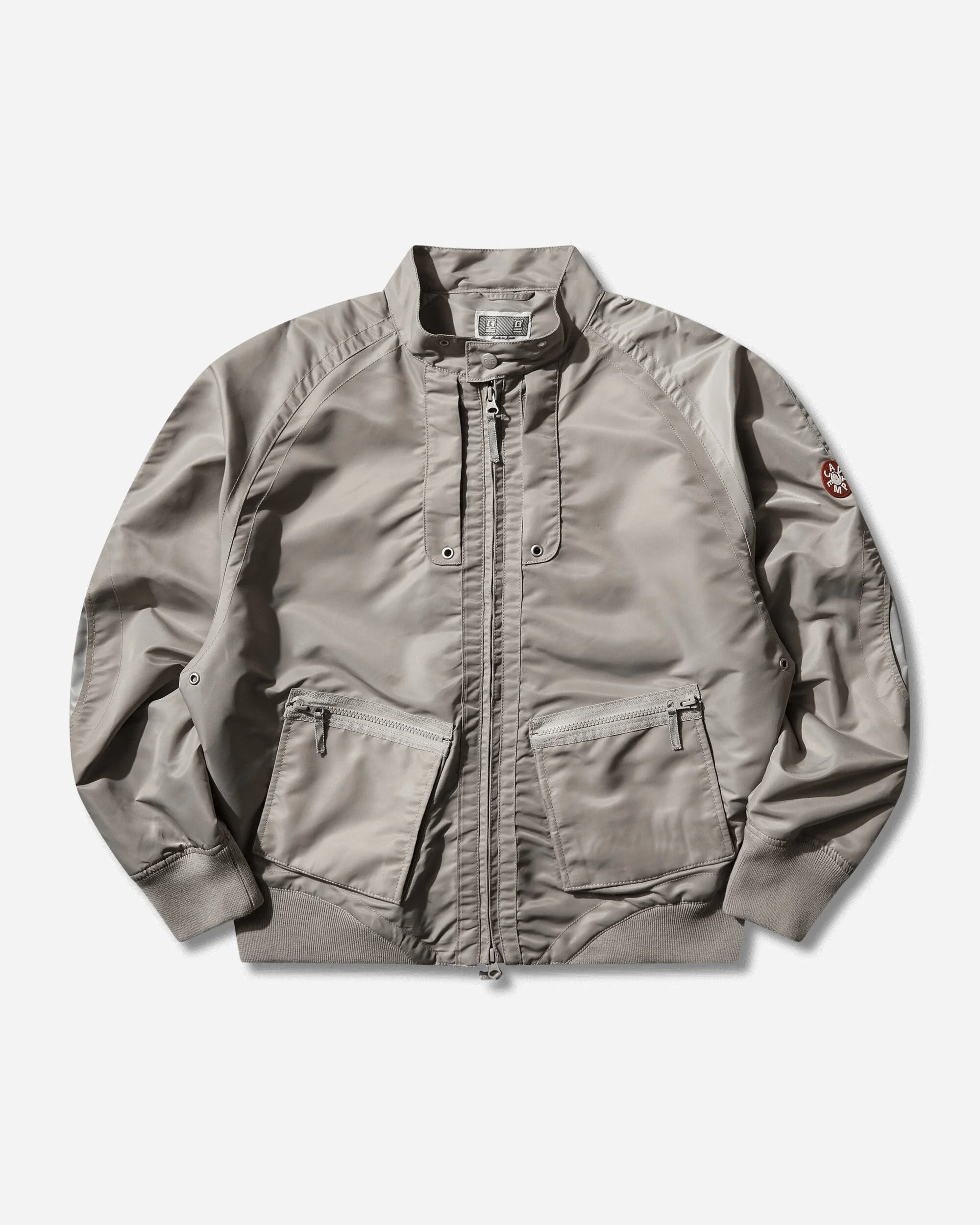 Cav Empt Design Nylon Zip Jacket Grey Constantly reinventing themselves with graphics and visual concepts that combine music, dystopia, and experimental streetwear, Cav Empt represents the pinnacle of the modern Japanese scene. - 100% Nylon - Loose Fit - Raglan Sleeves - Stand-Up Collar - Two-Way Zip Closure - Two Front Zip Pockets - Interior Pocket - Rubberized Logo Patch at Sleeve - Ribbed Cuffs and Hem - Made in Japan - Style Code: CES29JK04 GREY