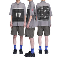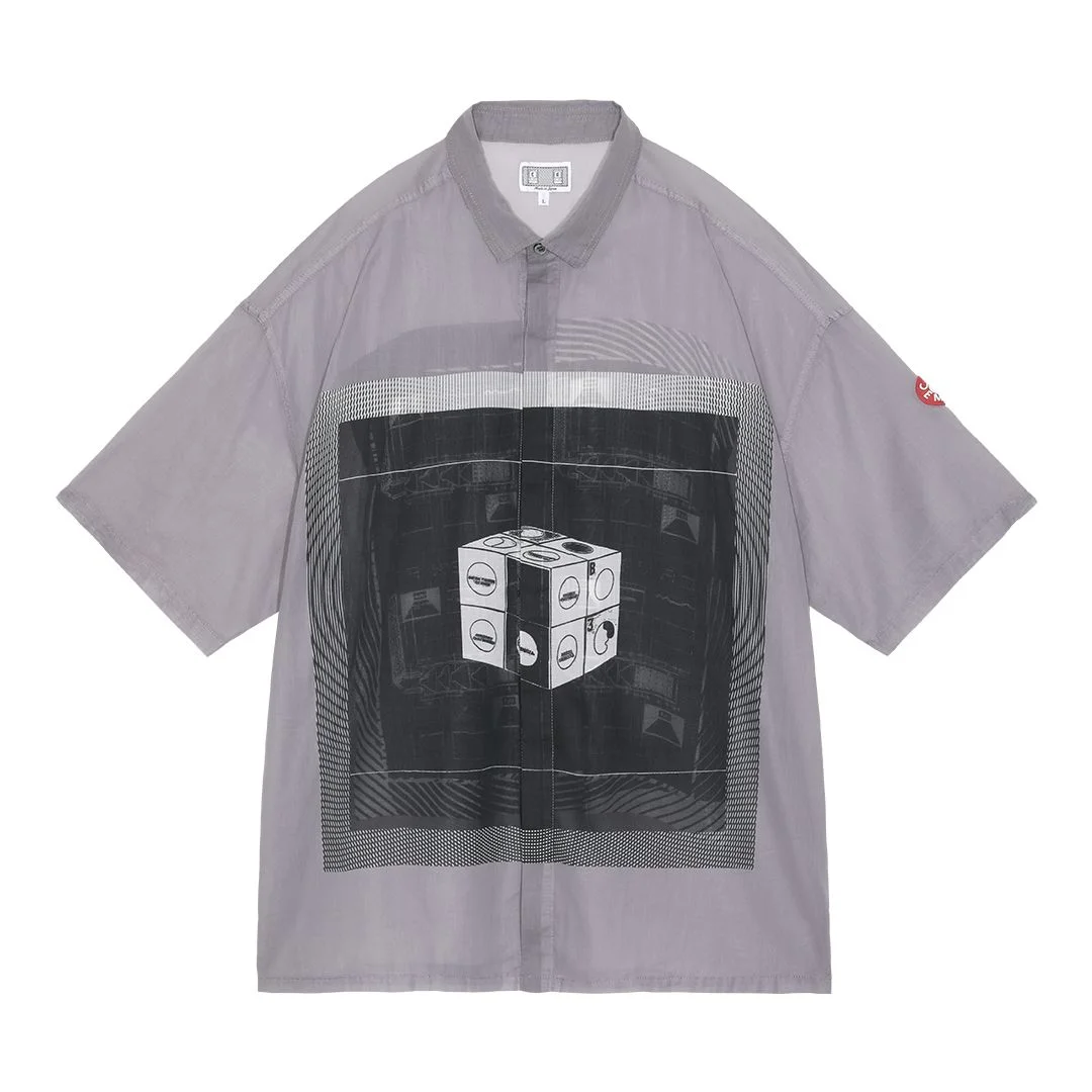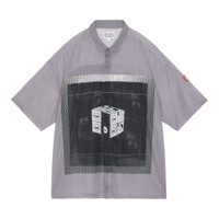 CAV EMPT ITEM INFO: 100% cotton. Short sleeves. Regular point collar. Fly placket. Graphics on front and back. Silicone patch on upper left sleeve. Side slits at hem. Wide cut. Bio-washed. Made in Japan. SKU: CES27SH09