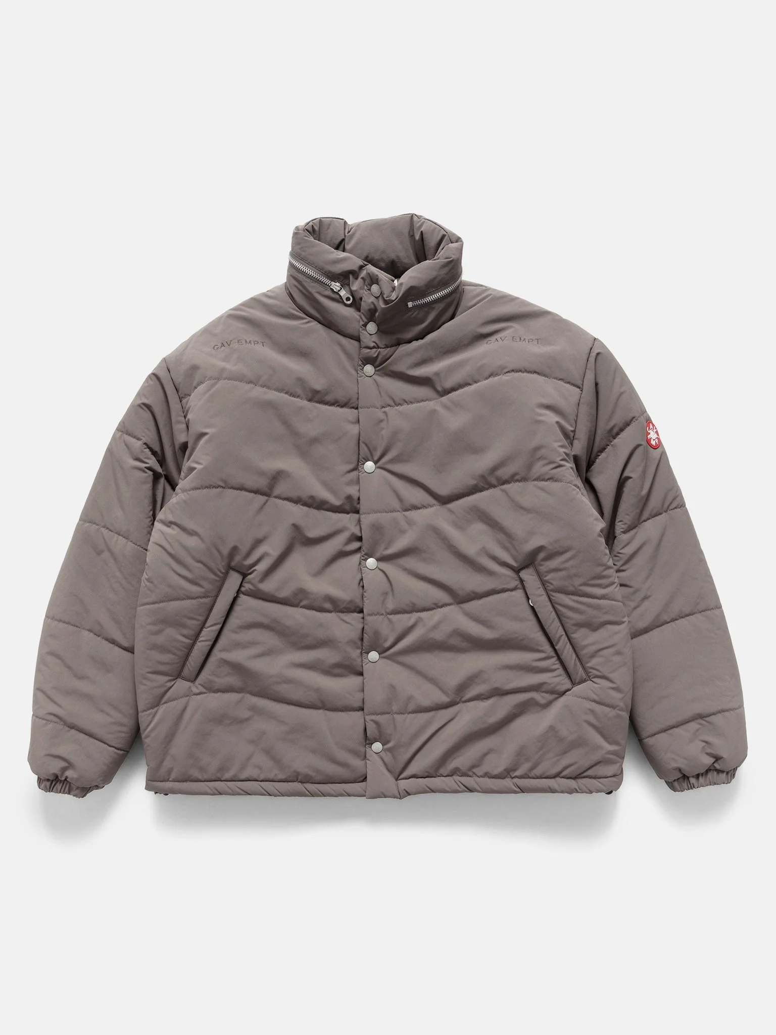 The CAV EMPT Wave Stitch Puff Jacket reworks a familiar winter staple through the brand’s singular lens. Insulated with lightweight Thinsulate padding, it delivers reliable warmth without excess bulk. The wave-shaped baffle stitching introduces subtle movement and visual intrigue, adding character without overpowering the clean form. Finished with a stowable hood, elastic cuffs, and signature CAV EMPT detailing, it’s a functional layer grounded in quiet expression. DETAILS - CES28JK02 - 100% Polyester - Regular fit - Dropped shoulders - Zip and buttonup front - Welt hand pockets - High neck collar with zip stowable hood - Elasticated cuffs - Adjustable cinch hem - Rubber branded sleeve badge - Made in Japan