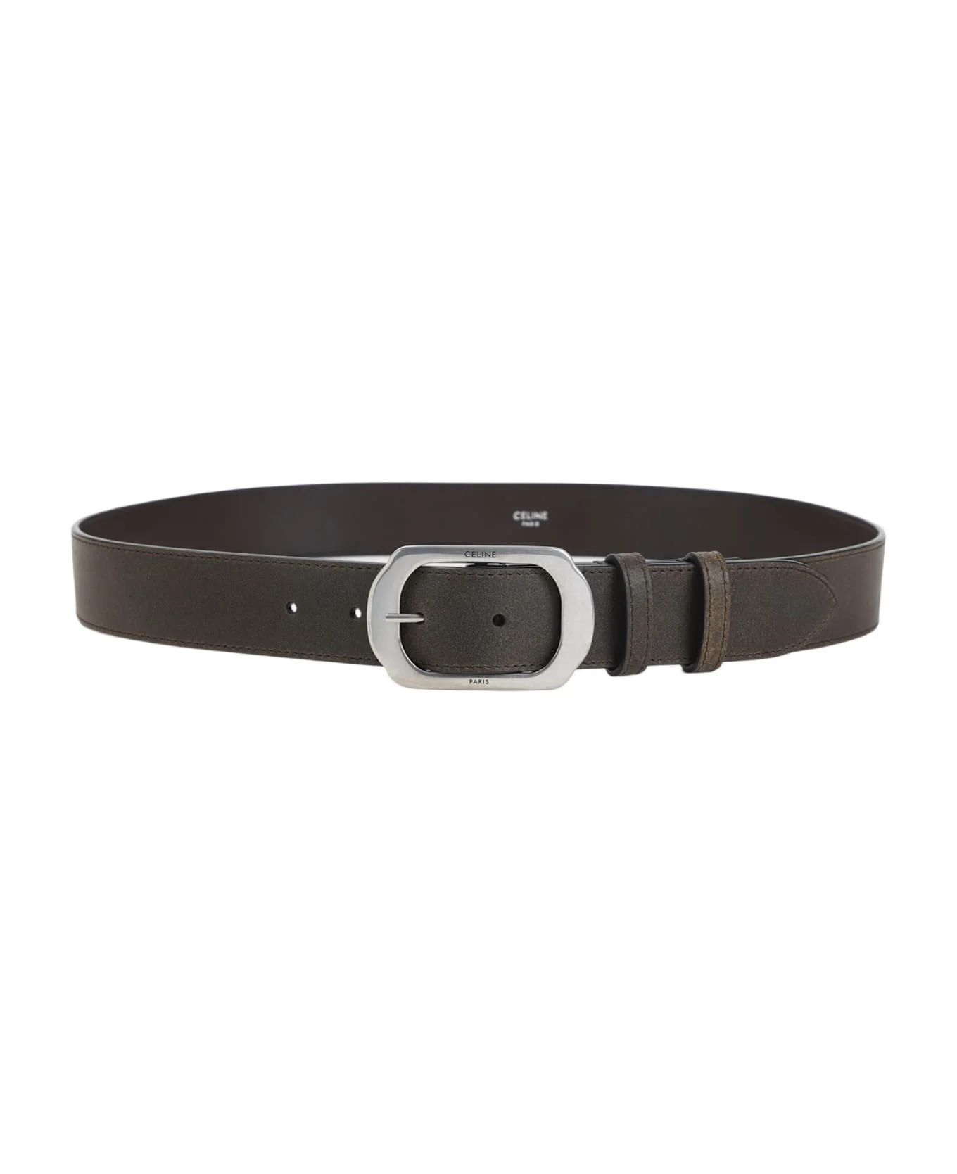 Celine 35mm Brown Calf Leather Belt. Crafted from aged brown calf leather, silver-toned hardware, round buckle with embossed logo detail, two leather belt loops, adjustable fit. Made in: Italy Color: Ui Brown Size and fit: - H:3,5cm Model number: 45BNG3ATV19UI