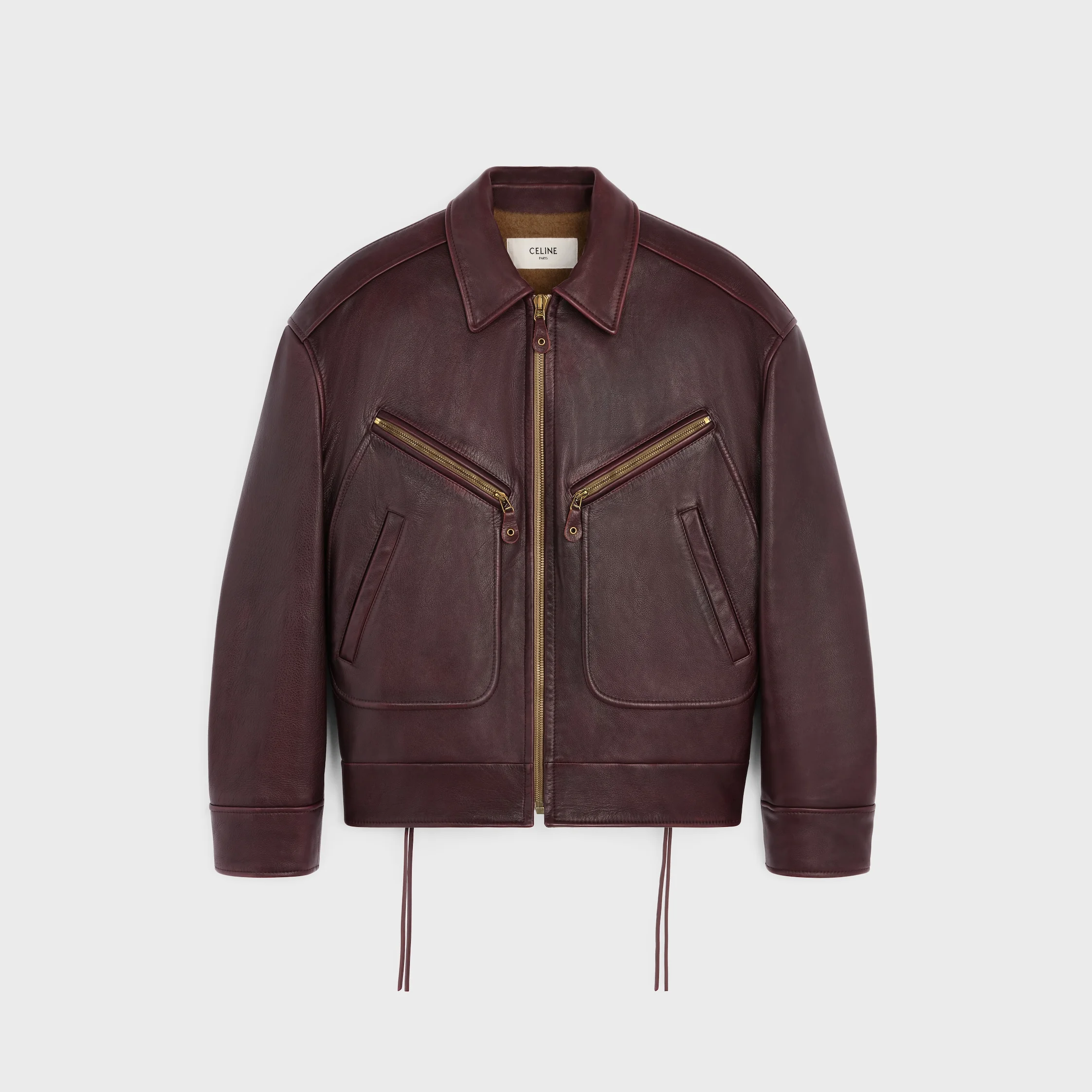 DETAILS 100% CALFSKIN FILLING 100% POLYESTER LOOSE FIT SHIRT COLLAR 2 ZIPPED POCKETS ON THE CHEST 2 DIAGONAL WELT POCKETS LACING DETAILS ON THE BACK ZIP CLOSURE MADE IN ITALY REFERENCE : RV0Q20R99.28LI