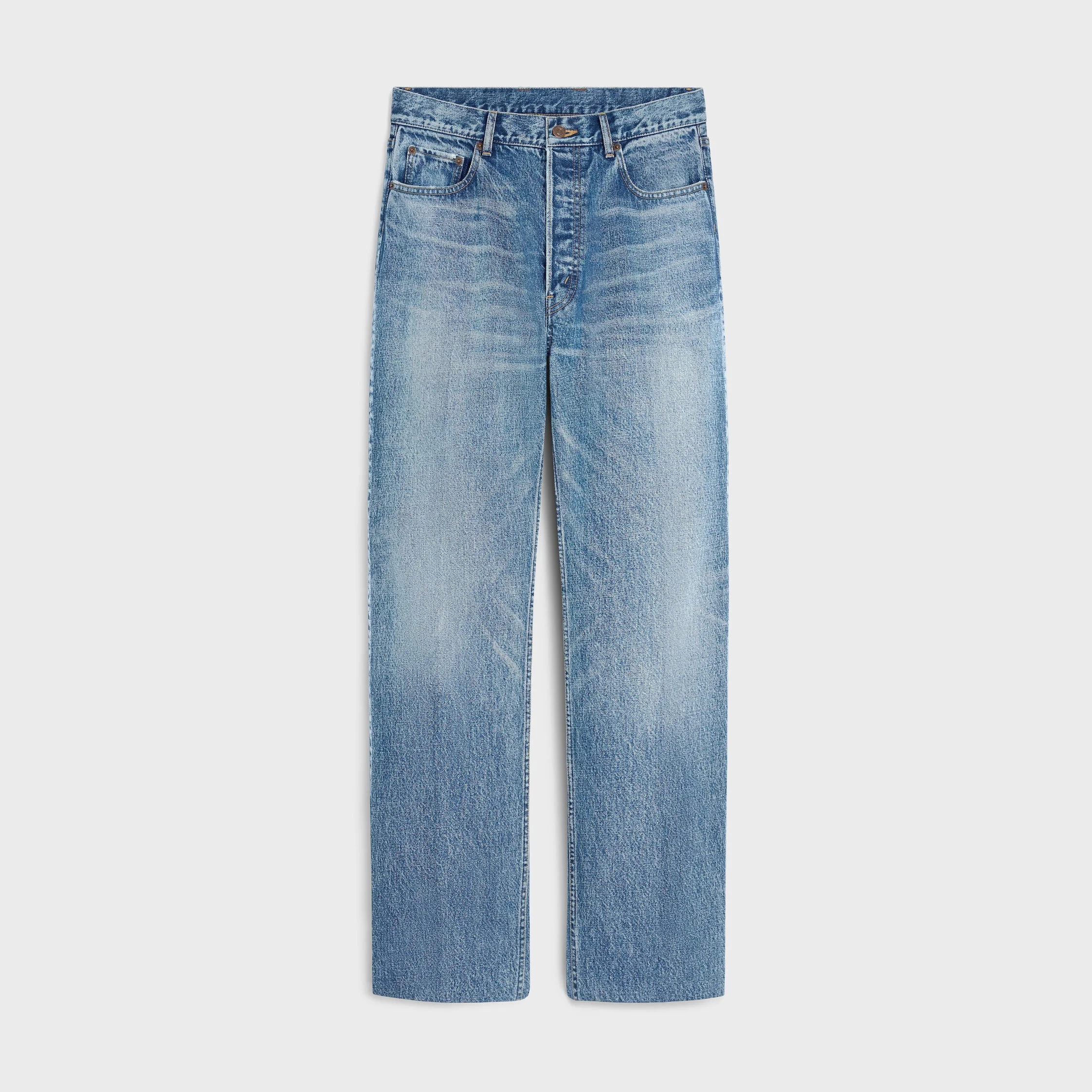 DETAILS 100% COTTON CLASSIC FIT MID-RISE STRAIGHT LEG 5 POCKETS RIVETS ON THE FRONT POCKETS CELINE PARIS PATCH AT THE BACK ON THE WAISTBAND CELINE JEANS-ENGRAVED BUTTONS MADE IN JAPAN REFERENCE : RP0DI930F.GFV6