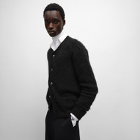 DETAILS 61% MOHAIR 35% POLYAMIDE 4% WOOL CLASSIC FIT CREW NECK 2 WELT POCKETS RIBBED TRIM 5 TRIOMPHE BUTTONS MADE IN ITALY REFERENCE : RY0SK0K68.38NO