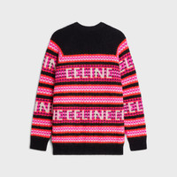 CELINE SKI JACQUARD WOOL CARDIGAN DETAILS 100% WOOL CELINE SKI JACQUARD LOOSE FIT V-NECK LONG RAGLAN SLEEVES RIBBED TRIM 2 WELT POCKETS 6 HORN BUTTONS MADE IN ITALY REFERENCE : 2AC91579S.24BK