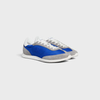 CELINE ENRICHES ITS SHOE COLLECTION WITH THE NEW “RACER” SNEAKER.REMINISCENT OF AN ATHLETIC 70’S AESTHETIC, LIGHTNESS AND COMFORT ARE KEY, WITH THE COMBINATION OF NYLON, SUEDE AND LEATHER. THE ICONIC “TRIOMPHE” SIGNATURE IS VISIBLE, EMBROIDERED ON THE SIDE AND DEBOSSED ON THE BACK.AVAILABLE IN STRONG COLOR COMBINATIONS THAT REINFORCE ITS RETRO SILHOUETTE, THIS VERSATILE AND UNISEX SNEAKER EMBODIES THE HOUSE’S CODES WHILE REMAINING RESOLULETELY ELEGANT AND SPORTY. DETAILS 50% TEXTILE, 50% CALFSKIN 0.4 IN (10 MM) HEEL EMBROIDERED TRIOMPHE LOGO ON THE SIDE OF THE SHOE DEBOSSED CELINE LOGO ON THE OUTSOLE EMBOSSED TRIOMPHE LOGO ON THE BACK OF THE SHOE LABEL WITH CELINE LOGO ON THE TONGUE DEBOSSED TRIOMPHE LOGO ON THE LACE LOOP TEXTILE INSOLE RUBBER SOLE MADE IN ITALY REFERENCE : 364945257C.07BE