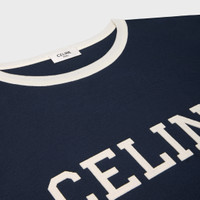 REGULAR T-SHIRT WITH CELINE PATCH IN COTTON JERSEYTHE CLASSIC CELINE T-SHIRT IS FITTED TO THE BODY.WE SUGGEST TAKING YOUR USUAL SIZE. DETAILS CELINE PATCH CLASSIC FIT CREW NECK CONTRASTING RIBBED TRIM ON THE COLLAR AND SLEEVES REFERENCE:RX02R507Z.FYW4