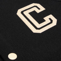 TEDDY COLLEGE JACKET WITH C AND CELINE EMBROIDERY IN TEXTURED WOOL DETAILS 90% WOOL 10% POLYAMIDE LINING 100% VISCOSE C EMBROIDERY ON THE CHEST CELINE PARIS EMBROIDERY ON THE BACK LOOSE FIT TWO-TONE TEDDY COLLAR LONG RAGLAN SLEEVES TWO-TONE RIBBED TRIM 2 DIAGONAL WELT POCKETS WITH PIPING 7 CONTRASTING CELINE-ENGRAVED SNAP BUTTONS MADE IN ITALY REFERENCE : 2V86W896C.38NO