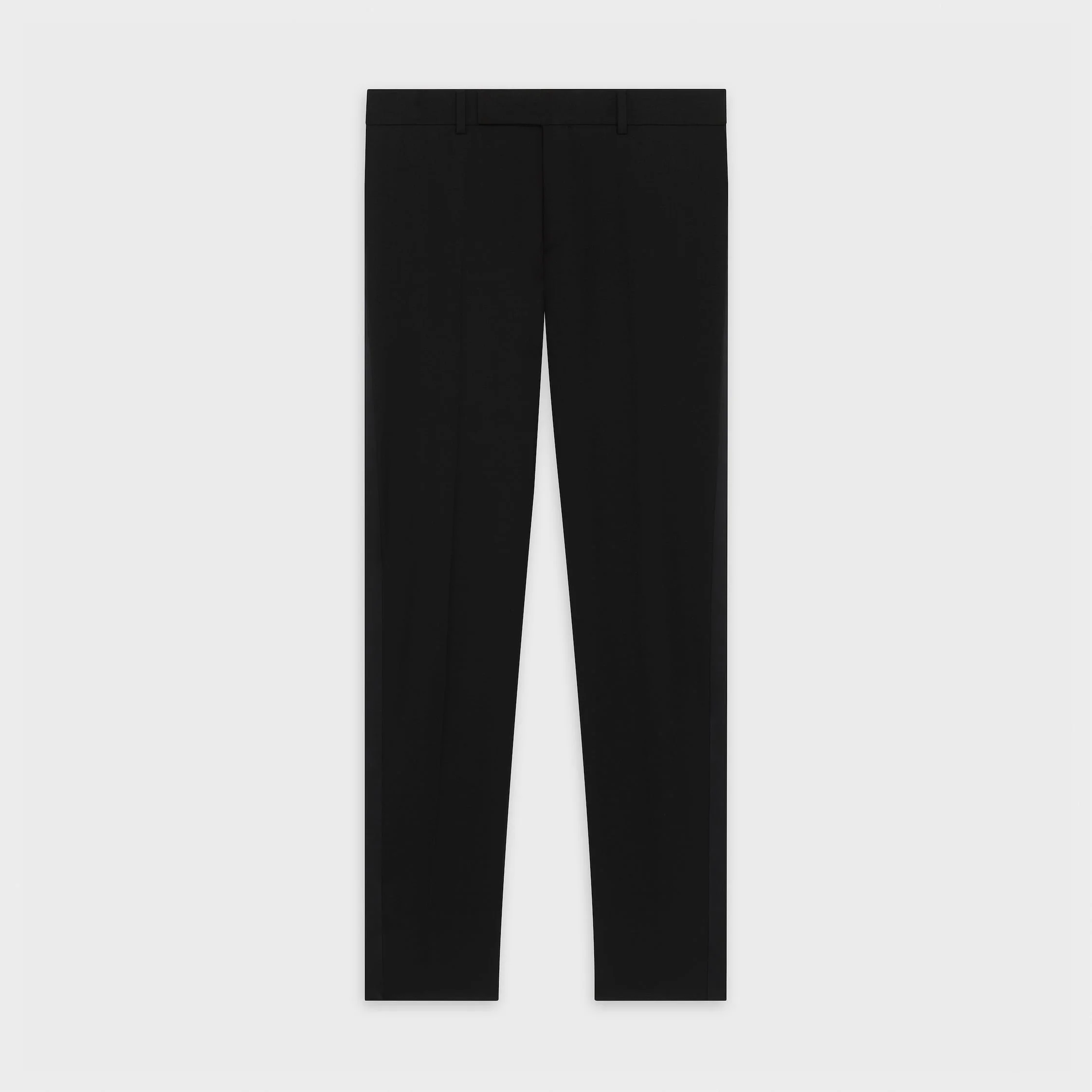 CLASSIC PANTS IN TUX GRAIN DE POUDRE DETAILS 100% WOOL CLASSIC FIT STRAIGHT CUT TAILORED PANTS SATIN SIDE STRIPES SIDE SEAM POCKETS WELT POCKETS BUTTONED ON THE BACK ZIPPER AND HOOK WAISTBAND 5 BELT LOOPS MADE IN ITALY REFERENCE : 2P096659D.38UB