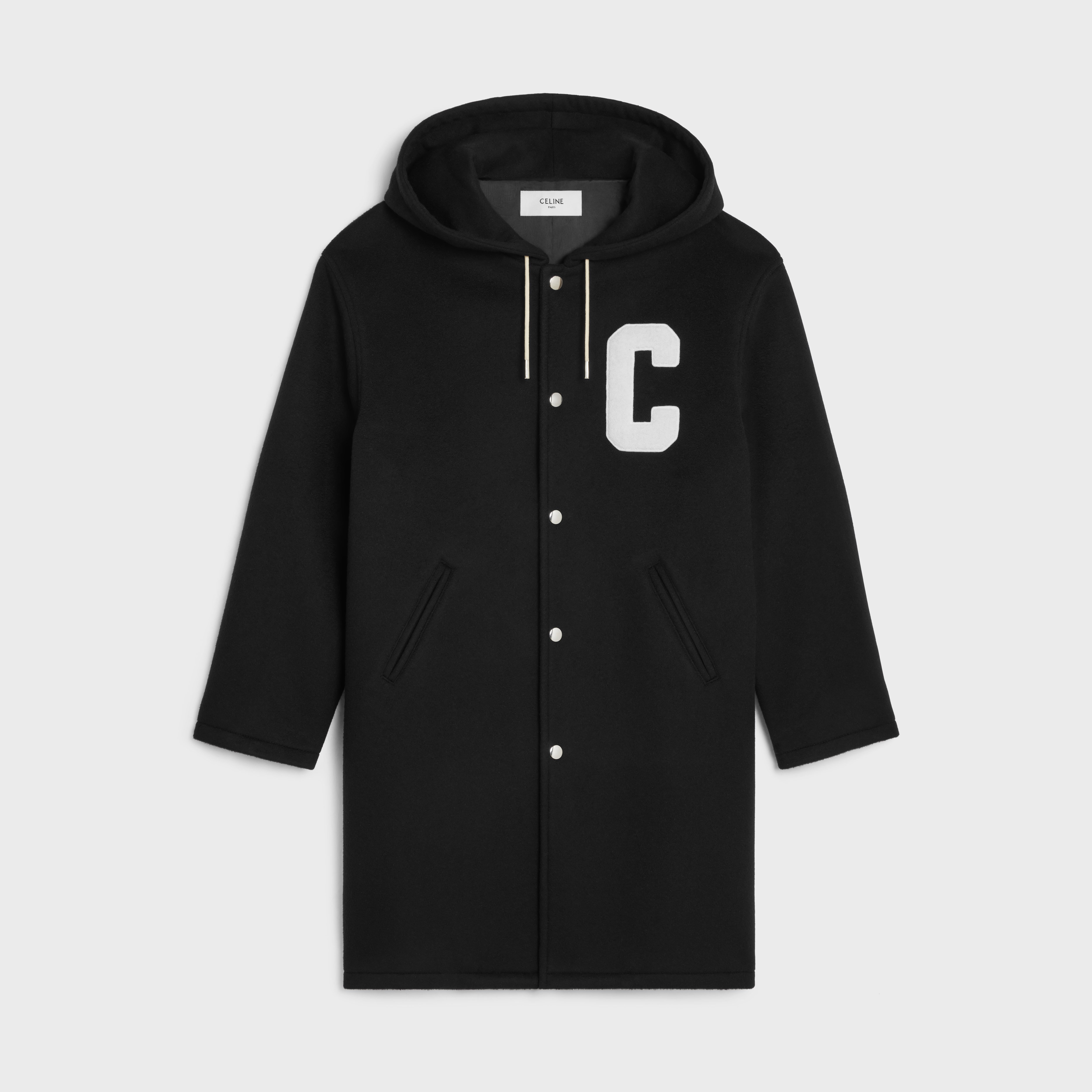COLLEGE PARKA WITH CELINE PARIS PATCH IN DOUBLE FACE WOOL DETAILS 100% WOOL LINING 100% VISCOSE ‘C’ PATCH ON THE CHEST CELINE PARIS PATCH ON THE BACK LOOSE FIT HOODED CREW NECK WITH ADJUSTABLE DRAWSTRING AND CELINE PARIS-ENGRAVED METAL AGLETS 2 DIAGONAL WELT POCKETS 5 METAL SNAP BUTTONS MADE IN ITALY REFERENCE : 2V73S553R.27NG